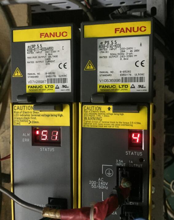 9051 SPN_n_: DC LINK 电压过低 主轴放大器显示51;同时,电源放大器PSM报警:4