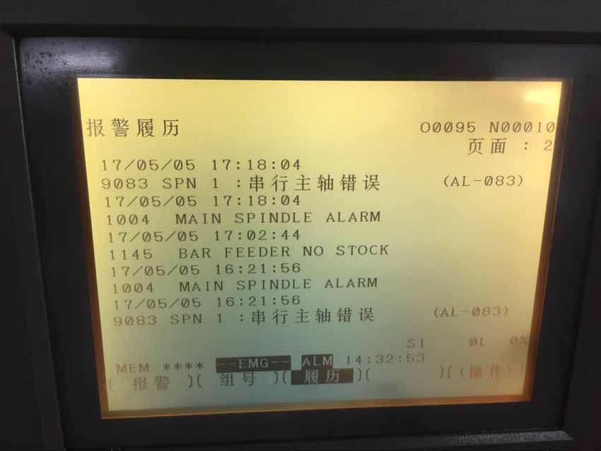 但是此次遇到一个奇怪的问题,当执行M56,背主轴和主轴同步时出现9083报警,且并不是一直出现,转速为2000转时,大概5分钟后出现9083报警,主轴驱动器数码管显示83报警。转速为50转时,大概1分钟出现9083报警。报警轴为背主轴,报警代码为SPN 2,对应机床背主轴。