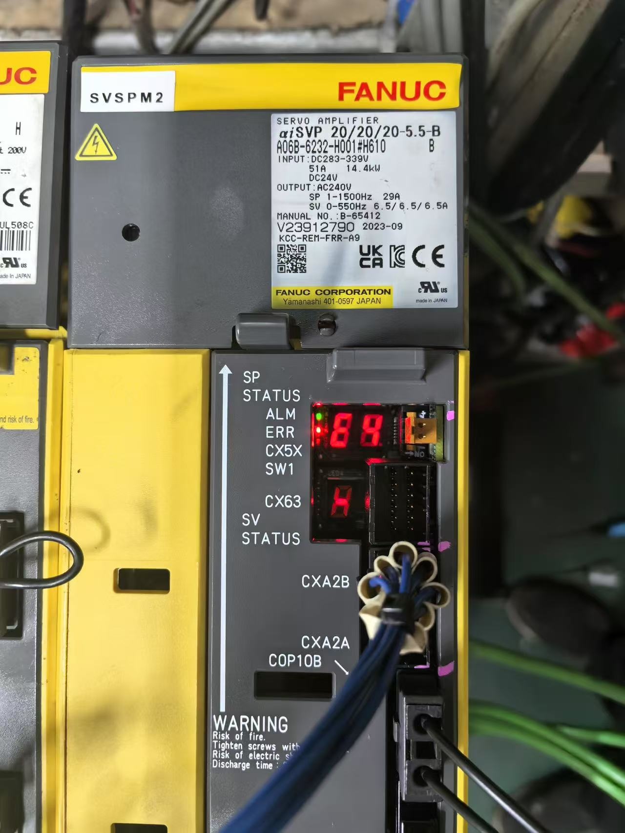 FANUC SP9144 电流检测回路异常报警 2025-10-06 发那科FANUC维修 阅 28 次 FANUC SP9144 电流检测回路异常报警已关闭评论 A06B-6232-H001#H610 FANUC SP9144报警表示主轴放大器的电流检测回路异常,可能由硬件故障或参数设置问题引起。 常见原因 电流传感器故障:检测电路元件损坏导致信号异常。 功率模块问题:内部元件老化或烧毁。 A06B-6232-H001#H610 A06B-6232-H001#H610 二维码 网页二维码 标签:SP9144报警 本文最后更新于: 2025-10-06 21:36:51 发那科 A06B-6240-H209 伺服放大器 FANUC SP9201 POWER SUPPLY (PS) ERROR 报警 猜您喜欢 发那科 A06B-6240-H209 伺服放大器 发那科主轴编码器 A17B-3900-0103 FANUC 0i MF PLUS FROM CARD 牧野Professional PS65主板花屏抖动 发那科重力轴提升相关技术 A06B-6240-H103伺服器不显示故障
